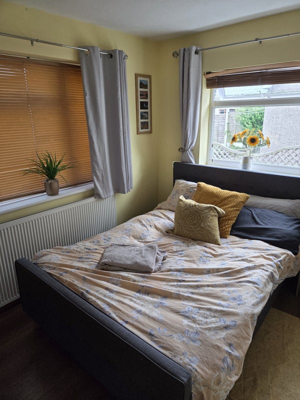 4 bed quiet house...1 small double bedroom downstairs with full sky package/ fast WiFi and own bathroom. Nice area! Welcome to. share kitchen and you can chill out in conservatory if need space. Internet included...little garden.