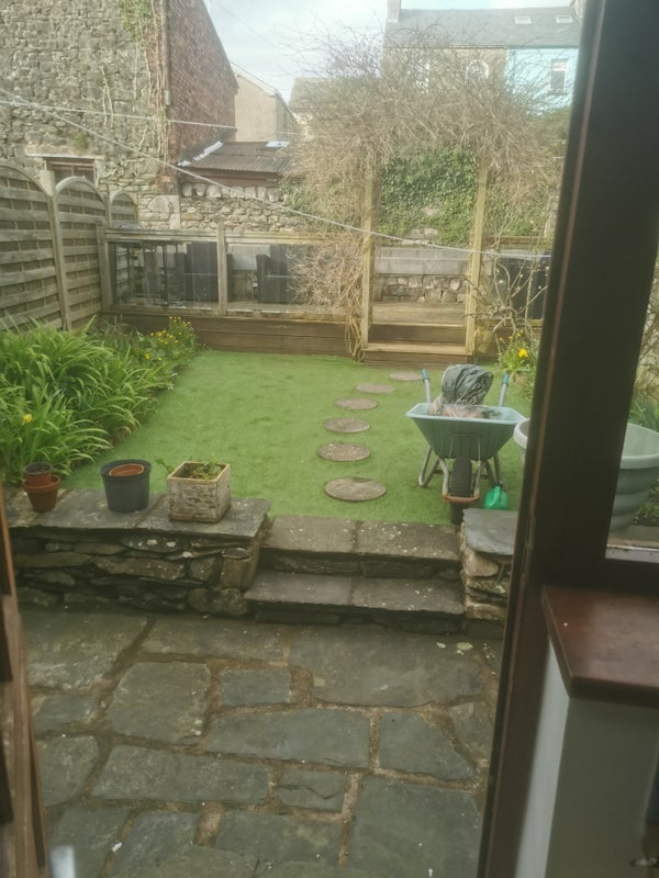 Nice garden to rear, with stream at the bottom, and the sound of running water