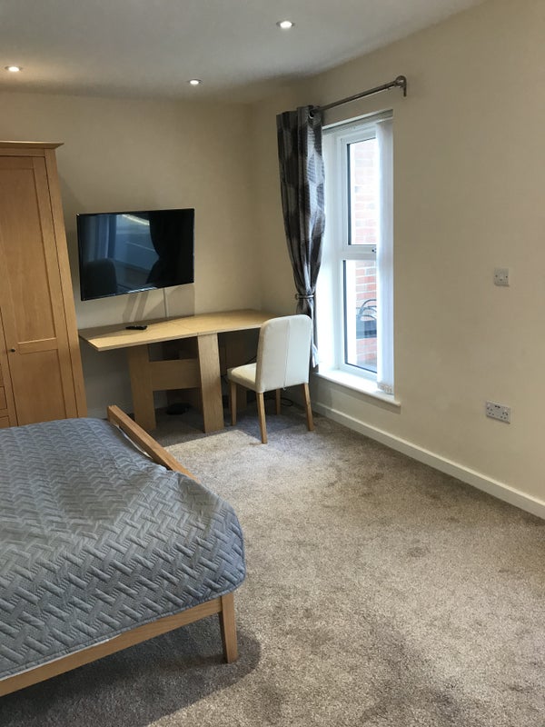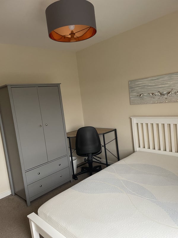 Room 2 - Double bedroom with quality double bed with memory foam mattress, side table, double wardrobe and 32" Led TV. Corner desk and chair. Available immediately