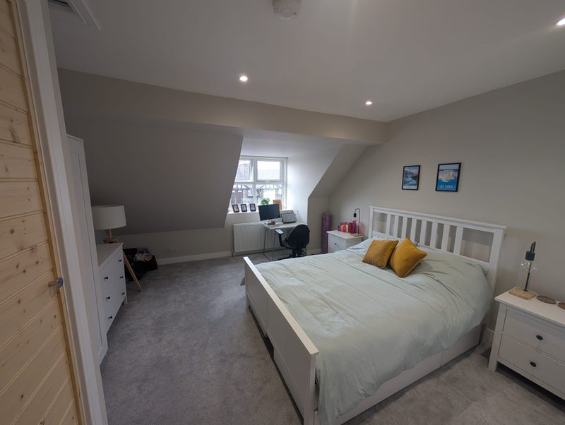 Large ensuite room with a king bed available in a lovely modern (just renovated) house in Windermere. The room is furnished with a wardrobe and plenty of storage. It has views over the Langdales, is a 10 min walk to the centre and 5 min drive to the lake.