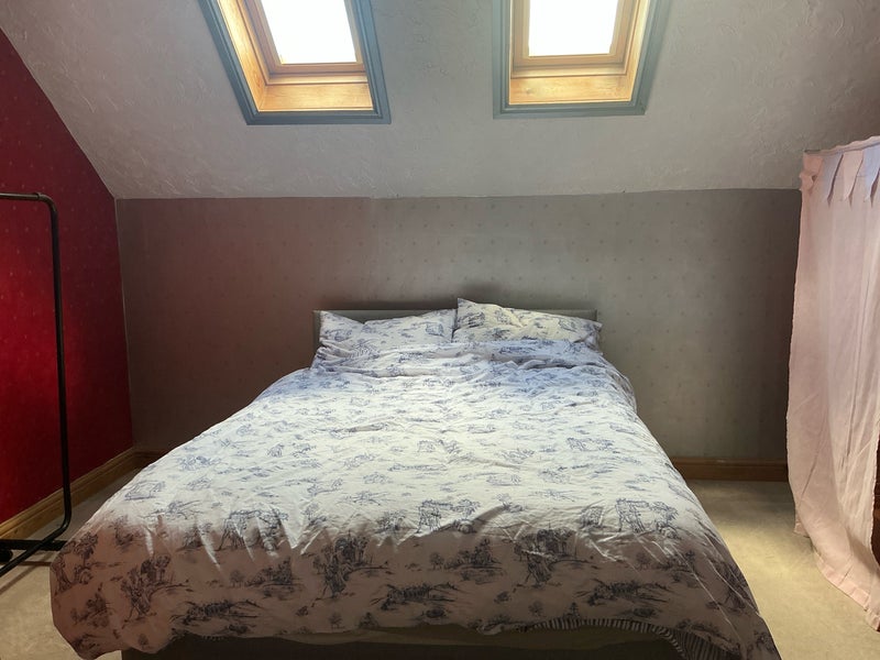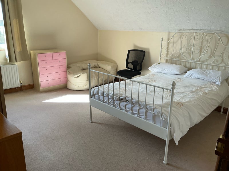 Large female friendly double room available for rent in a large 6 bedroom house with a 23 foot fitted kitchen. Room is furnished with a king sized bed and wardrobe. Council band F.