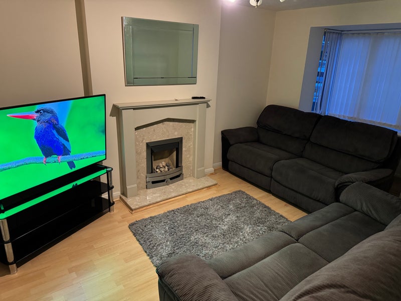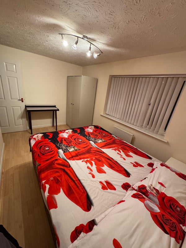 Bright and spacious detached house with excellent amenities. The property offers secure driveway, a garage, shared living room, modern kitchen, and a conservatory for relaxing. Two rooms are available: 2 double rooms.