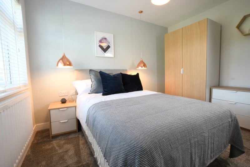 Each bedroom is equipped with a double bed, bedside tables, 1 wardrobe, a chest of 3 drawers, and 2 elegant pendant lights. There is an aerial in every room, allowing residents to set up their own TV if desired.