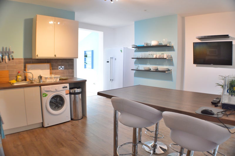 There is a breakfast bar within the kitchen area perfect to sit eat whilst watching the 42" smart TV, or listen to music on the blue tooth built in speakers. There is also a sofa to chill out on.