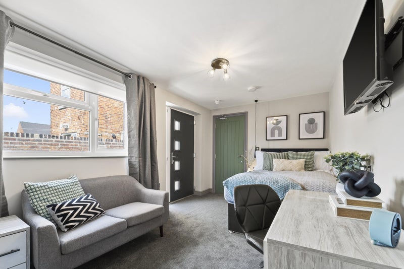 FULLY FURNISHED large ground floor studio room with EN-SUITE available in beautiful Victorian house located in central Chesterfield. Within walking distance from all the local amenities and transport links.