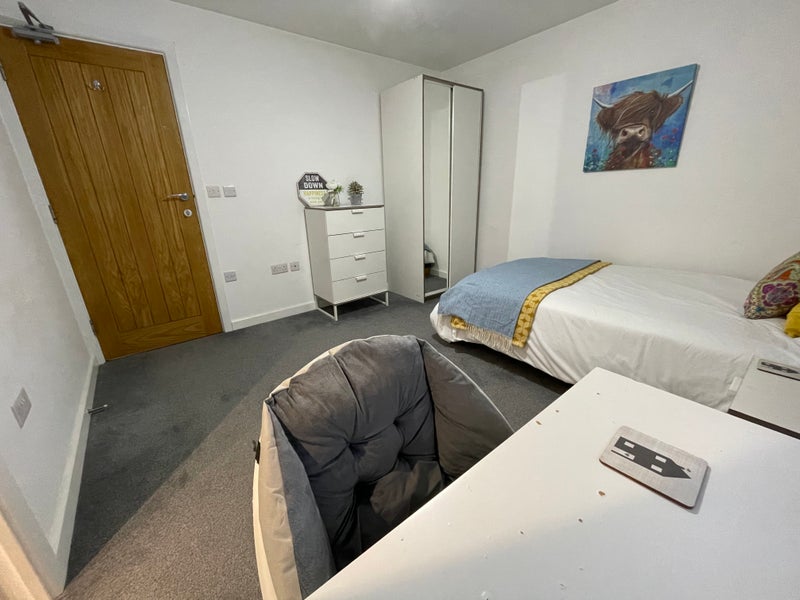 Choose this fabulously light and airy double room with its own stylish En-suite, it has everything you need to move in straight away, just unpack! This room is fully furnished with a designated workspace perfect for those who work from home.