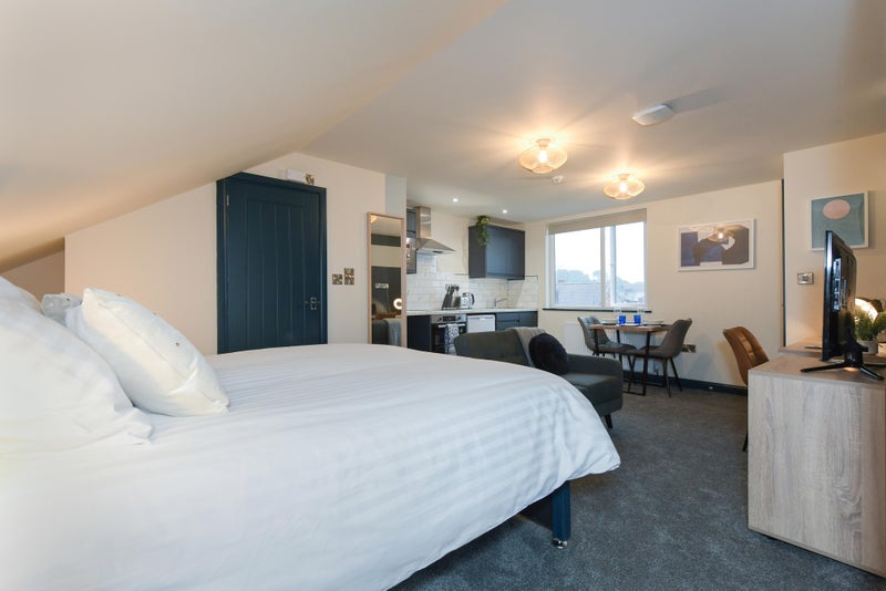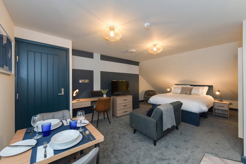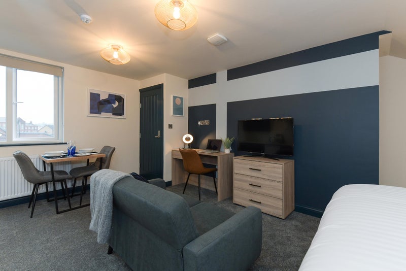 All high spec rooms are fully furnished with modern furnishings to include, wardrobe, chest of drawers, bed side unit and double bed. All rooms comes with its own shower facilities. The two studios come with cooking facilities and are self contained.