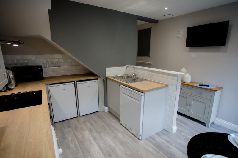 - Full kitchen with oven/hob/extractor/sink/undercounter fridge-freezer/microwave/kettle. All pots/pans/cutlery provided.