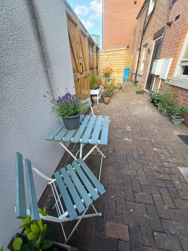 Courtyard with bistro-style furniture, shared with tenants from our other 3 flats in this development. Covered bike storage with lockable bike stand.