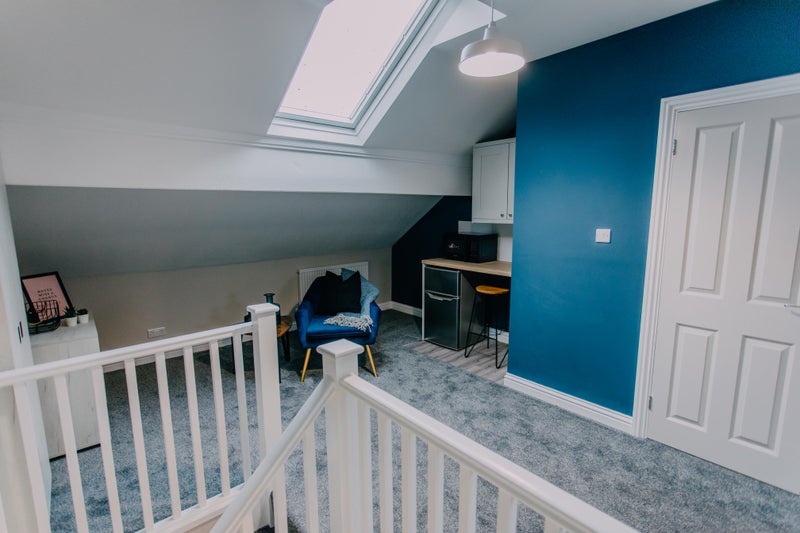 Room 5 - fully furnished with comfy bed, wardrobe, drawers, bedside cabinet, armchair/sofa, desk/chair. Kitchenette with microwave, kettle, fridge/freezer, breakfast bar. En-suite with shower/basin/loo/heated towel rail.
