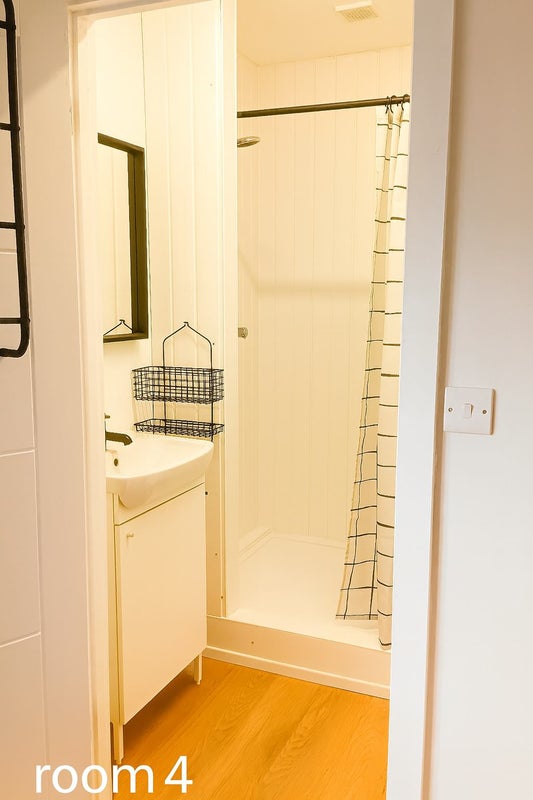 Room 4 [01:23 in video] – Available now (Single Occupancy) This room has a large bedroom and spacious ensuite: