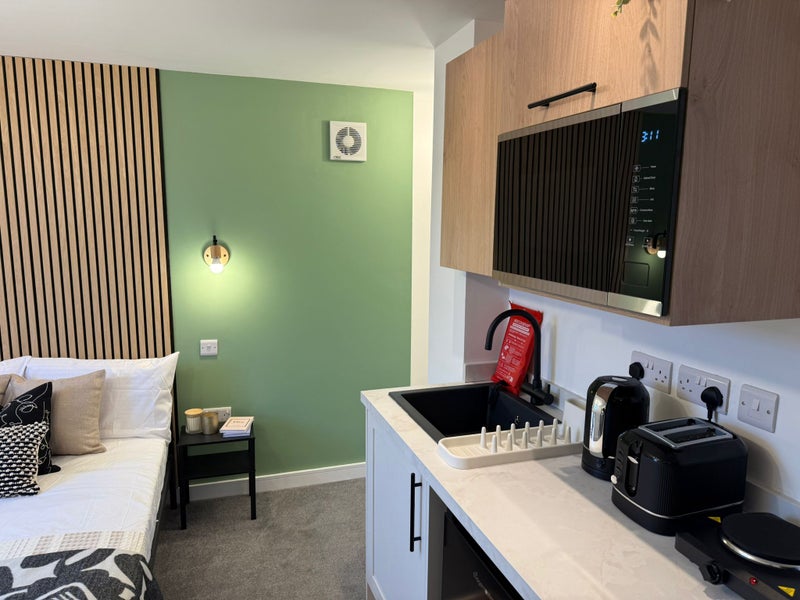Each room benefits from stylish décor, modern kitchen facilities and private bathroom or studio living — designed for comfortable independent living.