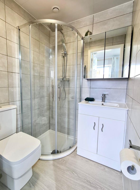 Ensuite bathroom with shower.