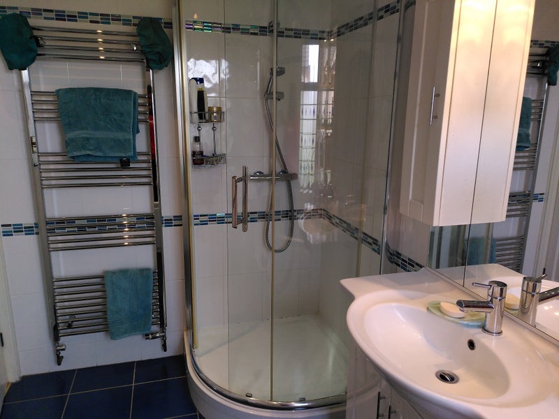 Large family bathroom upstairs and downstairs is toilet/shower.