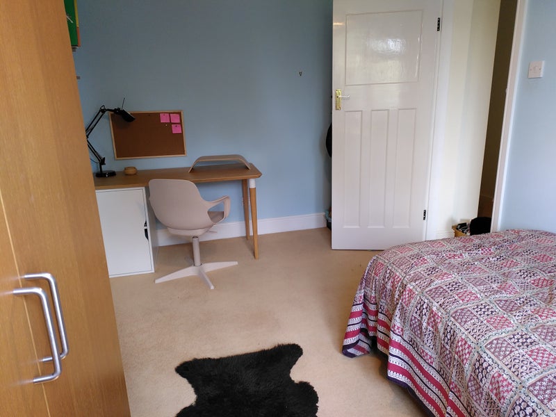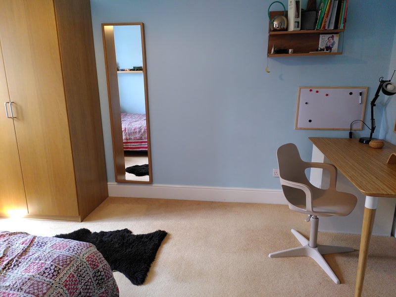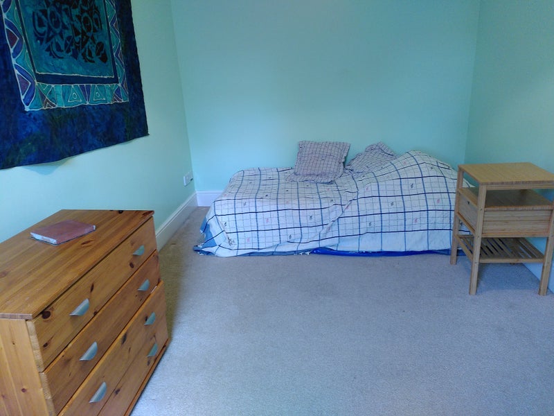 The Green room is the nicest one with views of the large back garden. This room is quiet, warm and light. The room is furnished with new bed and a spare bed underneath ready for your friend. Rent is £100 per week.
