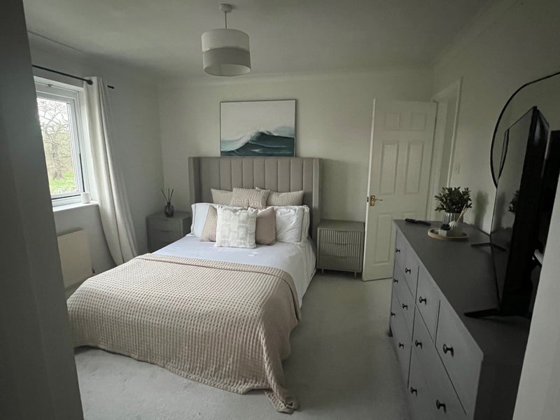 Hi! This is a large room in a bright house with a built in wardrobe with plenty of storage, a king size bed and ensuite. The room is furnished and ready to move in and also has a TV with Netflix.