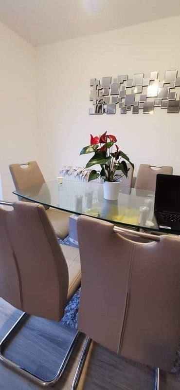 Clean and quiet place. I have a bog garden. I have 11 year old. I work at NHS. Its 3 minutes walk to bus stop going to town or 5 minutes walk going to one stop. There is shops within the area