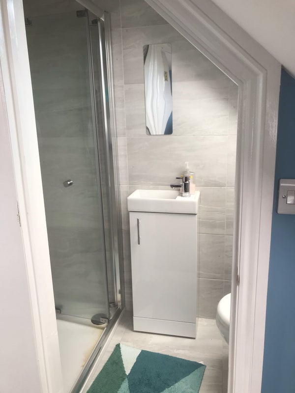 The room itself is a good sized loft conversion on the second floor with windows at either end and an en-suite shower room. At present it has a bed, double wardrobe and chest of drawers. The house is a Victorian 3 bed terrace and has a dining room, living room, kitchen and garden. There is generally plenty of on street parking in front of the house (Annual permit fee applies) We also have fibre broadband.