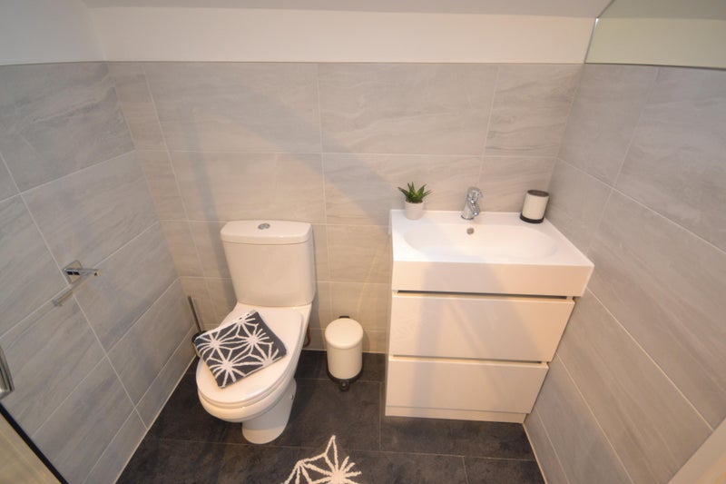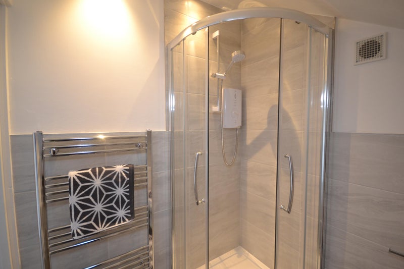 A beautiful property fully refurbished to a very high standard. The house is generously proportioned throughout The open plan ground floor communal living space comes with a breakfast bar, TV and Sofa. The kitchen is equipped with oven, hob, microwave, dishwasher, fridge, washing machine and an American fridge freezer. There is a stylish ground floor shower room with WC and vanity basin. On the first floor there is a further shower room. The bedroom available is situated on the third floor in the attic and is a double with en-suite shower room.
