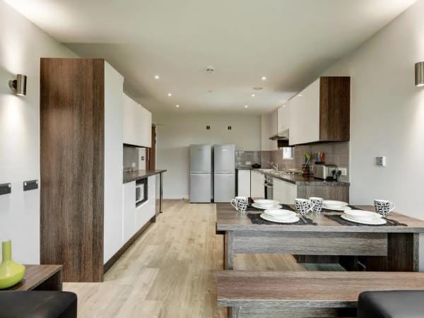 There is a large shared kitchen with storage space, hob, oven, microwave, fridge, freezer, dining table and couches, and the flatmates are super friendly.