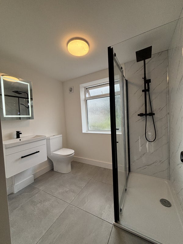 - Spacious Bathroom with Shower, LED Mirror & Storage