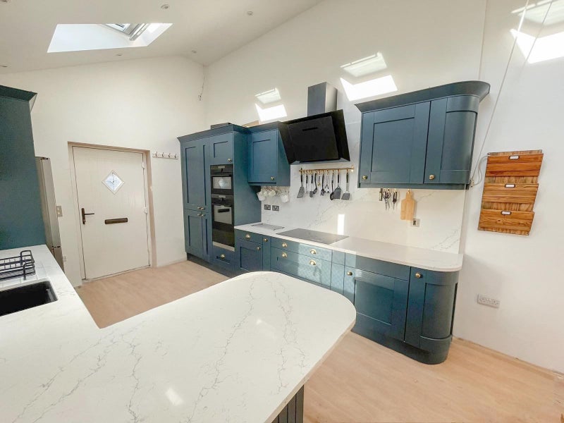 Fully fitted shared kitchen/diner with state of the art induction hob, steam oven, microwave oven, warming drawer, American fridge freezer. Plenty of space for storage. Mood lighting.