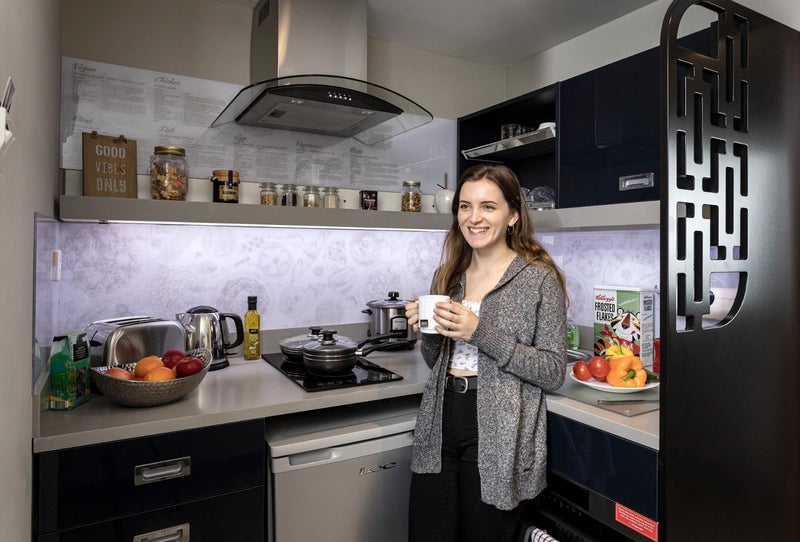 In Study Inn’s Gold studios, you will find an en-suite bathroom, self-contained fully fitted kitchen, comfy bed, wardrobe, and a work desk. However, that is not all. We also throw in a few luxuries such as 32-inch flatscreen smart TV, kitchen and bedding essentials, and superfast Wi-Fi.