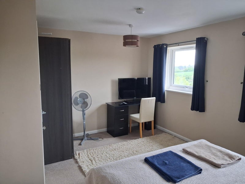 All bills included . Large double room to rent. Friendly quiet house in Exwick area of Exeter . Room is furnished with king size bed , wardrobe, drawers and desk. (Shown in pictures) Two bathroom/showers in house, one upstairs and one downstairs . There is TV and wi fi broadband in shared kitchen /diner . Plenty of off road parking . male or female welcome..