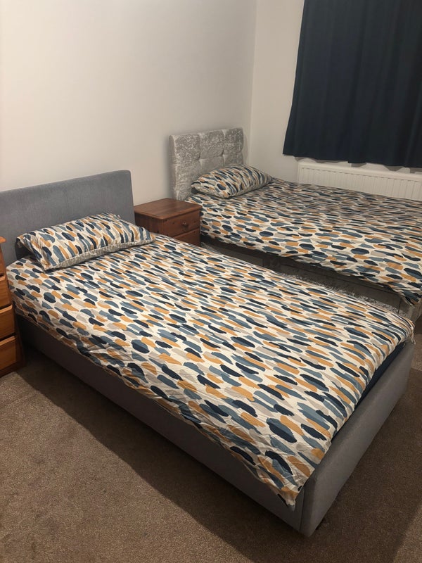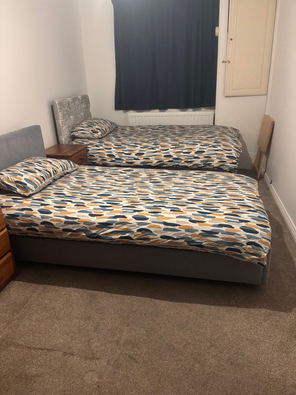 Twin beds in converted garage room off kitchen, would suit professional working person or student.