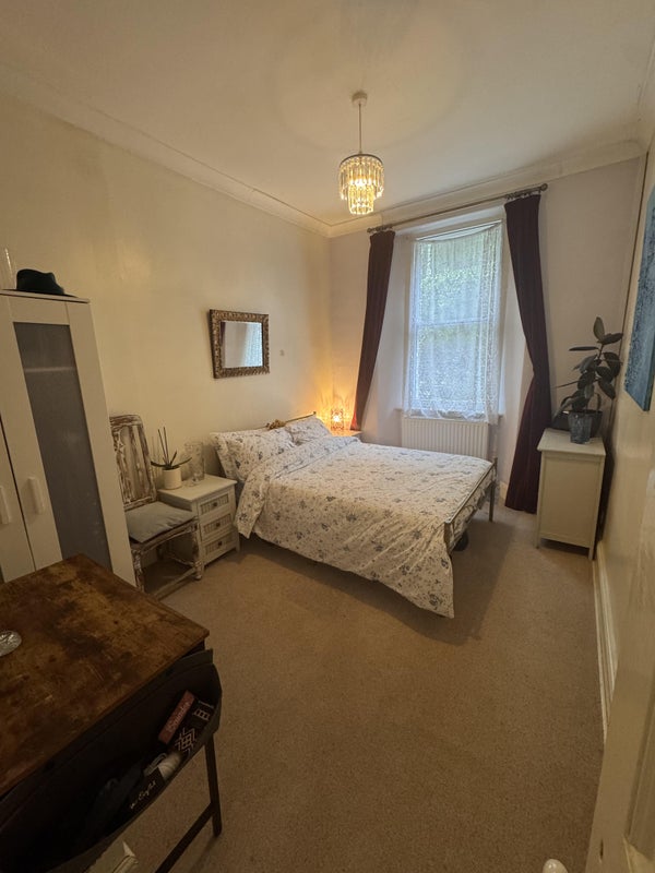 Spacious double room with a king-size bed and private en-suite available in a large, quiet house. The property is set among trees and located next to the beautiful Torrs, offering a peaceful and relaxing environment. Ideal for a tidy, calm professional who is comfortable around cats. On-street parking available. Council Tax Band D.