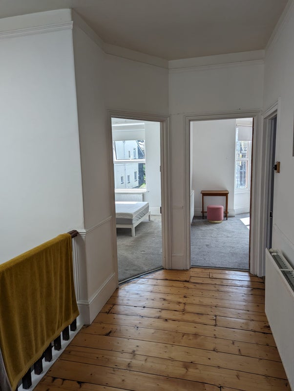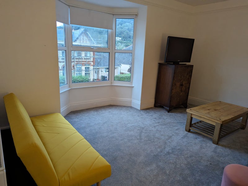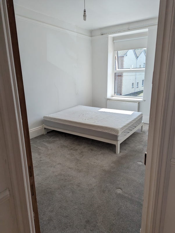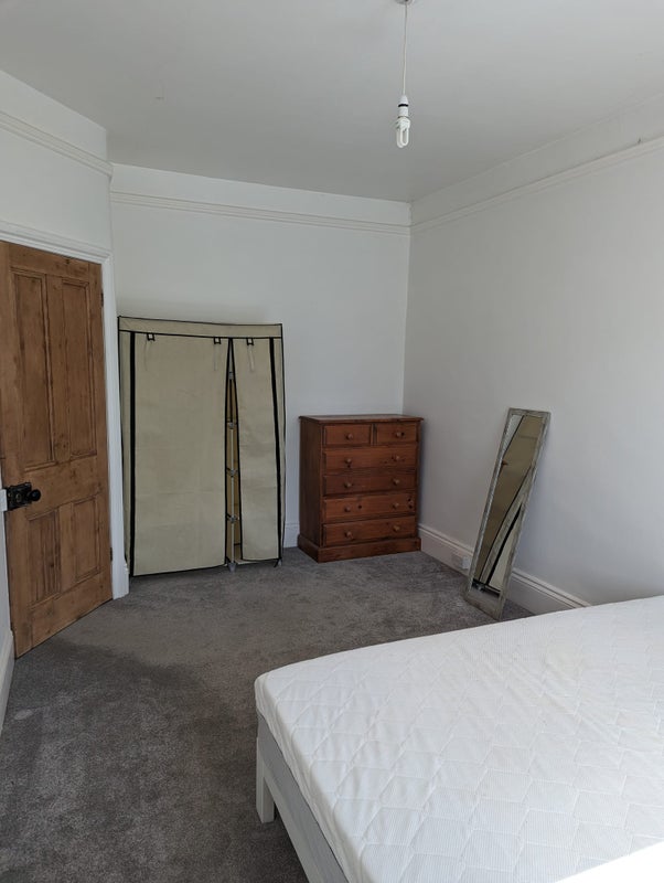1 large double bedroom furnished with bed, drawers, wardrobe