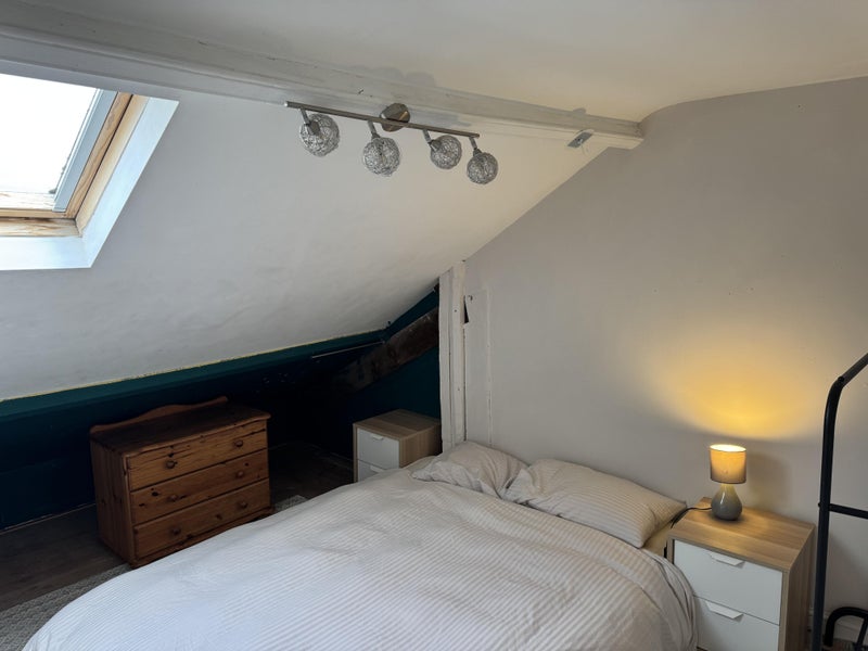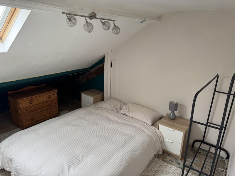This is a lovely room in a very friendly household. It is a double attic and just been redecorated with a brand new rug. The bedding is for photo purposes only, you will need to provide your own pillows and duvet.