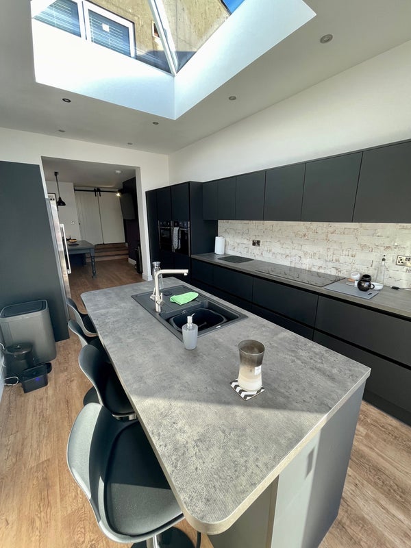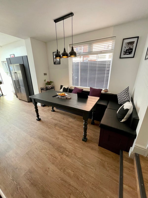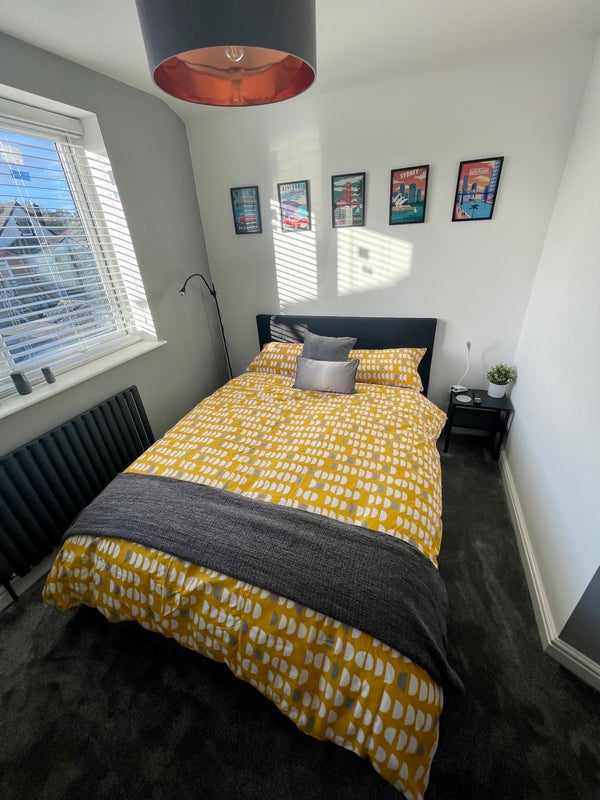 Nice modern south facing bright double room for rent in modernised terrace town house , shared kitchen and dining area, patio garden, friendly mature house mate, 2 lovely cuddly British shorthair cats , on road parking , on the level short walk to shops and beach