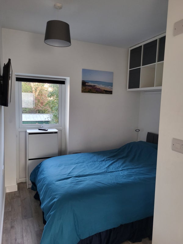 Small double bedroom with smart tv and ensuite bathroom.