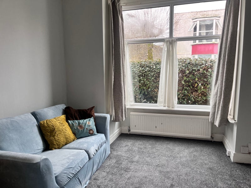 OVERVIEW: Ground floor suite to rent comprising entry into sitting room with sunny bay window, mantlepiece, built in shelving, curtains, and voiles. Internal doors to double bed, built in wardrobe, new carpets, and floor to ceiling window over rear courtyard, vanity unit and sink, and separate en-suite shower and toilet room. I would consider allowing a pet that will not leave this part of the house for an additional monthly rent of up to £25 per month, provided damage is paid for and carpets are professionally cleaned at the end of the tenancy.