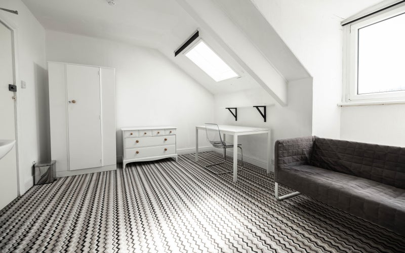 Room 10 is a very large room, on the top floor of the property. This room comes fully fursnished, with a double bed, wardrobe, chest of drawers, desk, chair and sofa.