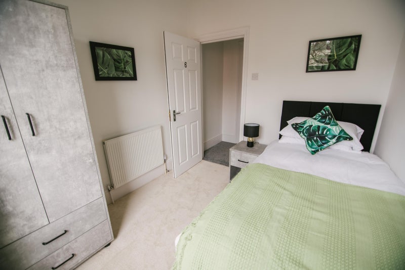 Room 6 is a large double room at the front of the house on the ground floor. The benefits from being fully furnished with good storage and a double bed.