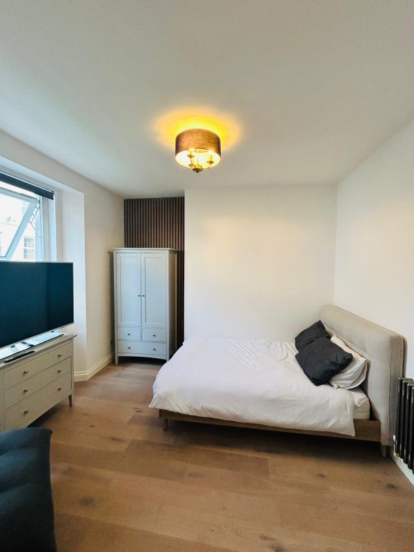 1 bedroom available in very top end apartment. New oak flooring. Solid oak fire doors. 60 Inch smart TV. Stag furniture. New kitchen and new bathroom. Bathroom is a wet room. Cast iron radiators. Double glazing. Very central location. Annual parking permit available for extra cost. John Lewis induction hob. Smeg oven and microwave.