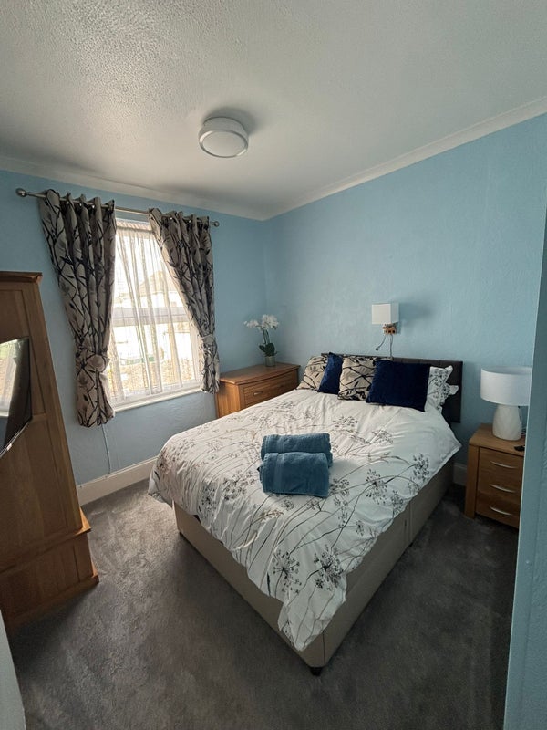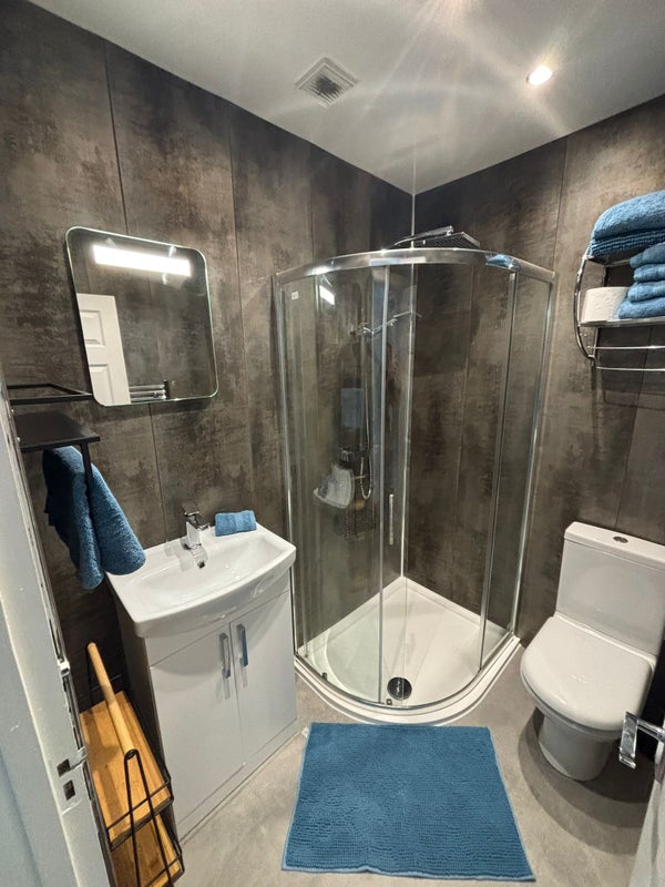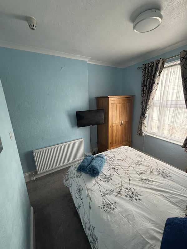 Double room with onsuite, 3 other lodgers. Shared lounge, shared kitchens, outside rear area. Smoking outside only.