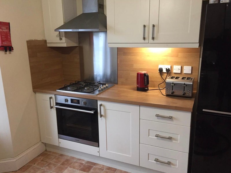 The house is fully furnished and has a quiet, friendly atmosphere. There is an open plan living area with a good sized kitchen/dining space, hob/oven, 4 fridge freezers (one tall double between two people plus a single fridge freezer), microwave, washing machine and tumble dryer etc, full gas central heating, 2 shower rooms with toilets and super fast WiFi to all rooms.