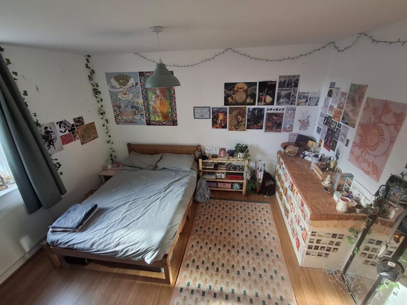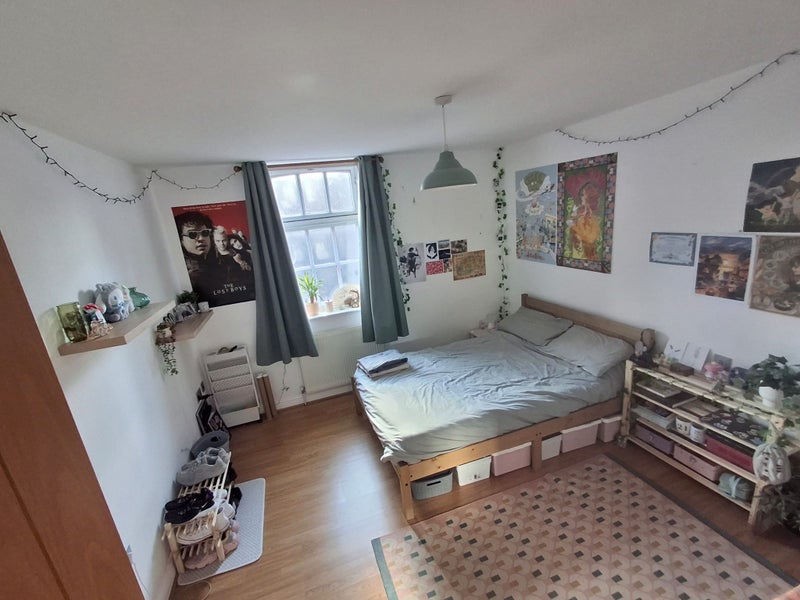 The room available is a spacious double bedroom - unfurnished apart from a large chest of drawers (6 deep drawers) and standing mirror which can be removed if needed. Large window with plenty of sun during the day. Lots of space for a double bed and desk. Landlords are happy for us to decorate our rooms with posters and pictures (they will also fit things to wall if wanted e. g shelving etc.) The rent is £600pm plus bills (Council tax band C).