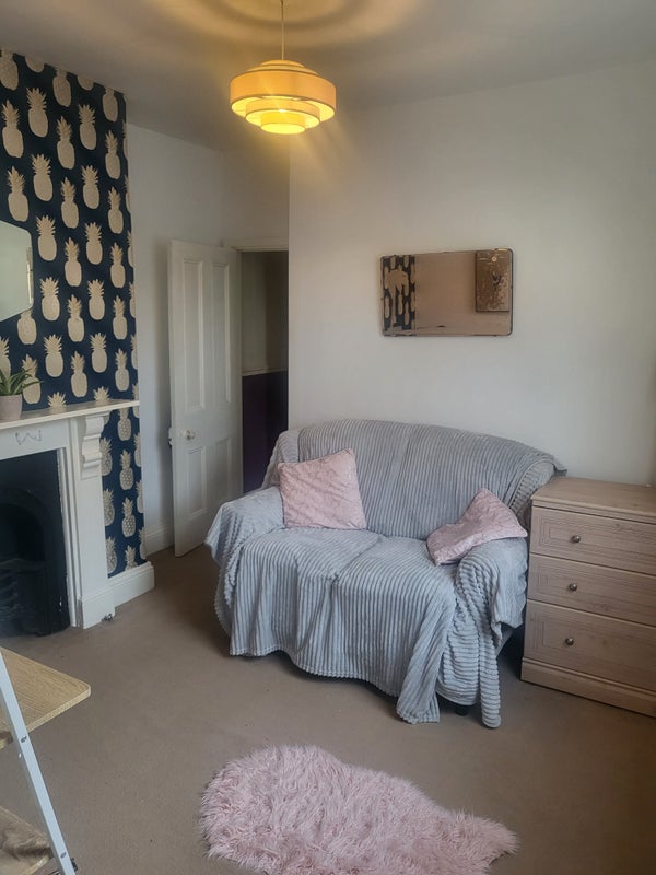 I have repainted and carpeted the bedroom and furnished it with a 5ft double bed with two comfy mattresses, new wardrobe and bedside table in the bedroom and a two seater sofa, desk & chair, tall chest of drawers, double chest of drawers, individual radiator thermostats, 1GB Virgin Internet, freeview aerial point.