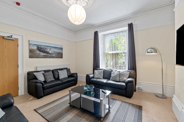 Great for a group of 8 students. This grand house which is situated just minutes from the Uni and the town centre has 2 large communal rooms and a large kitchen. It has 3 shower/bathrooms with wc’s. Also a downstairs toilet. 1 GIG broadband, WIFI and all rooms have ethernet points. Rents include Broadband, TV licence and a generous allowance for utilities. There are 2/3 parking. 3D Walkthrough available by request.