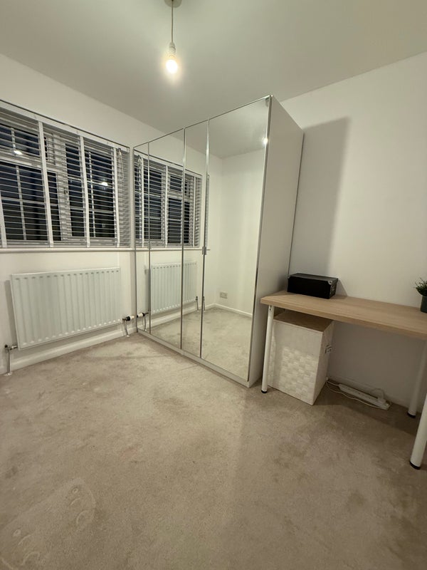 Second smaller room with built in wardrobe and desk space.