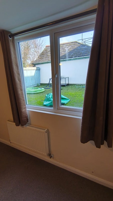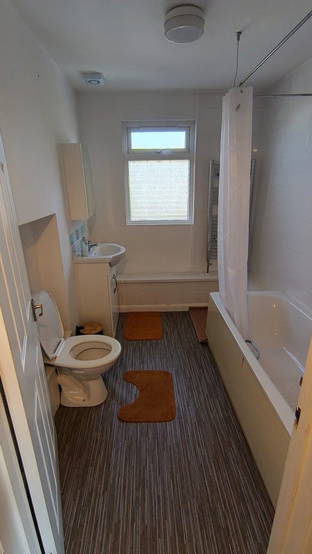 We have a vacant double bedroom in our 3-bedroom, 1-bath house. We (our family) occupy the other two bedrooms. The vacant room has a bed, which can be used or removed.