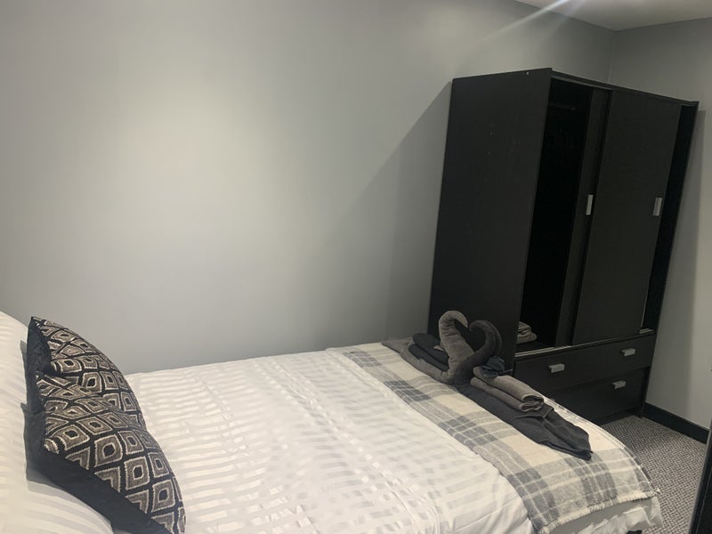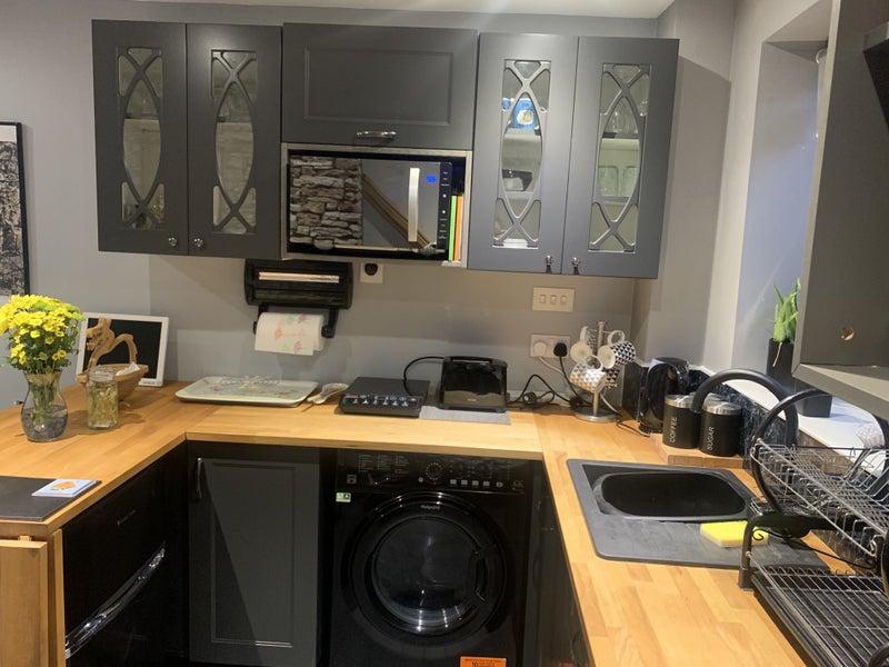 Smart contemporary one bedroom self contained annexe for rent. Central heating, fully furnished with off road parking space and outdoor dining area. Annexe is attached to our house, so we live on site and can be available for maintenance, and cleaning and cooking services for an additional charge. Looking for a single professional or couple. There is a kitchenette with microwave, air fryer, single halogen hob, slow cooker, toaster, kettle, fridge with freezer compartment and washer/dryer. Please note there is no oven in the property. There is a first floor ensuite shower room and a ground floor wc and the property has its own front and rear access. The property is in a quiet residential area with easy access to bus routes to the city centre, shops, restaurants and fast food outlets.