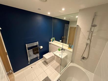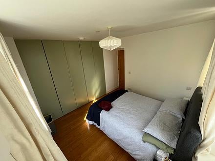 There is a light and airy, spacious double room with built in wardrobes for your use. The main living are and kitchen includes a television, washing machine, tumble dryer, utensils, internet and great views of the city.
