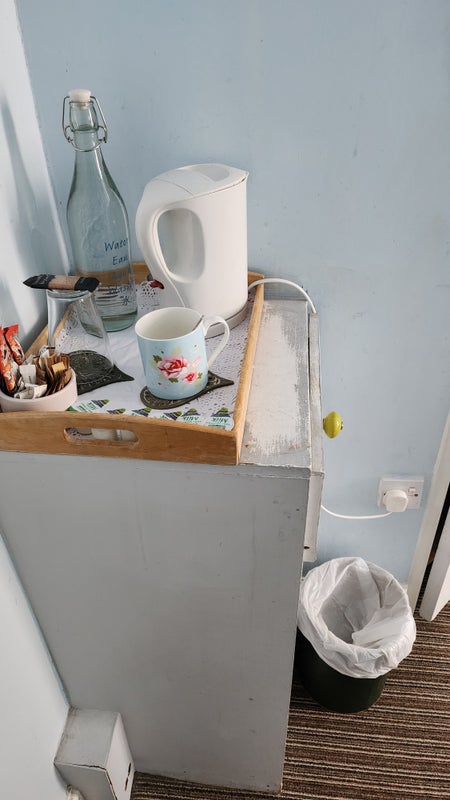 Communal fridge microwave and cutlery available.
