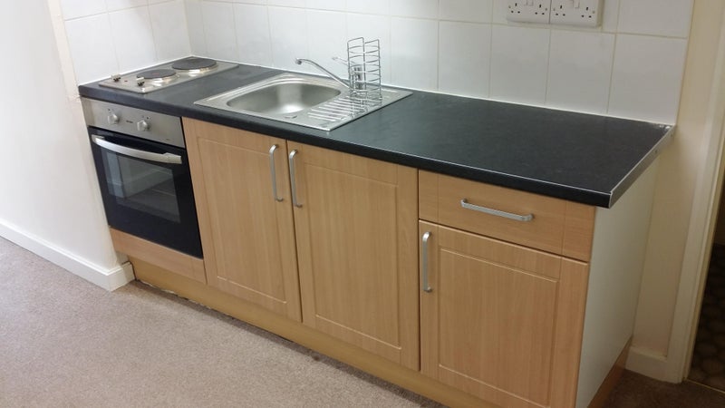 * Self contained. Consists of double bedroom/living room, good sized separate kitchen (with full cooker and washing machine), shower room/WC