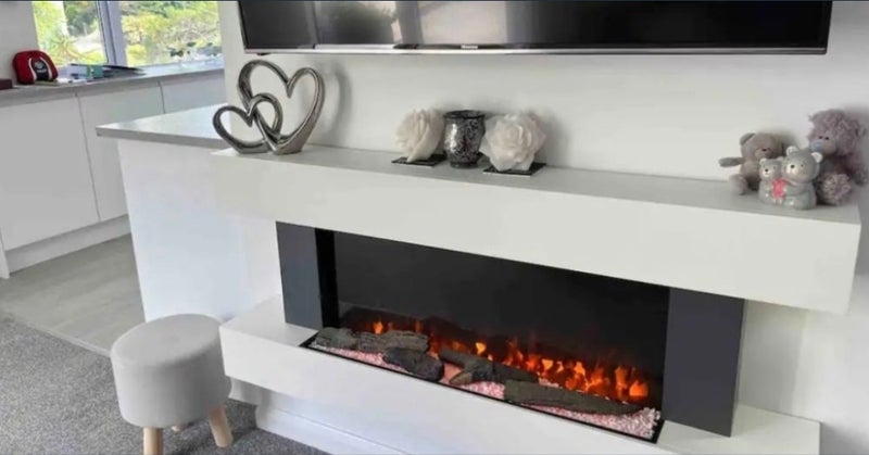 Relaxing Living Area: Features a cozy corner sofa, wall-mounted Smart TV, and an electric fireplace.